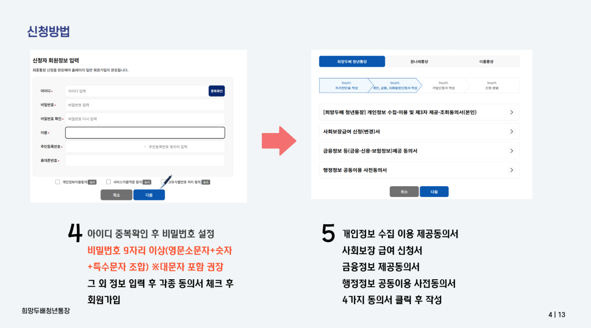 희망두배 청년통장은 온라인과 오프라인 모두 신청 가능합니다. 다만 준비 서류가 많기 때문에 여유 있는 시간 확보와 미리 서류 준비를 권장드립니다.