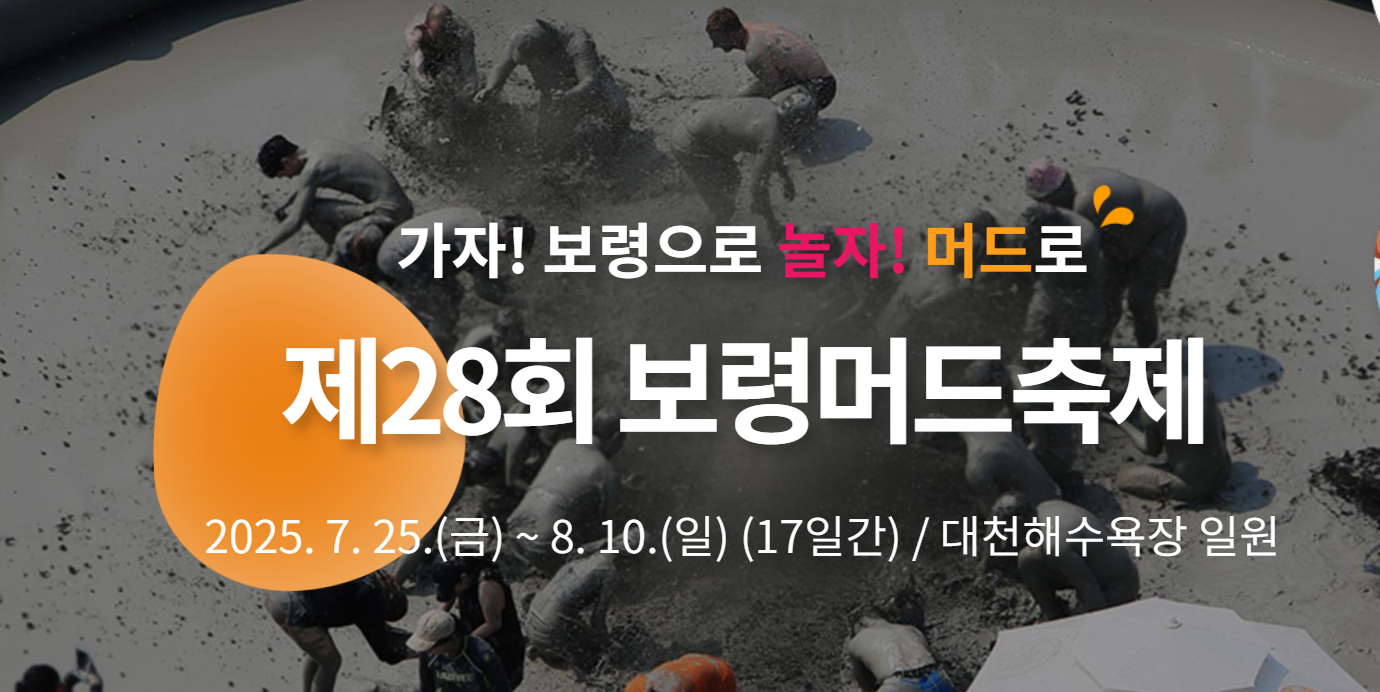 2025년 보령 머드축제는 7월 25일(금)부터 8월 10일(일)까지 총 17일간 보령시 대천해수욕장 일원에서 열립니다.