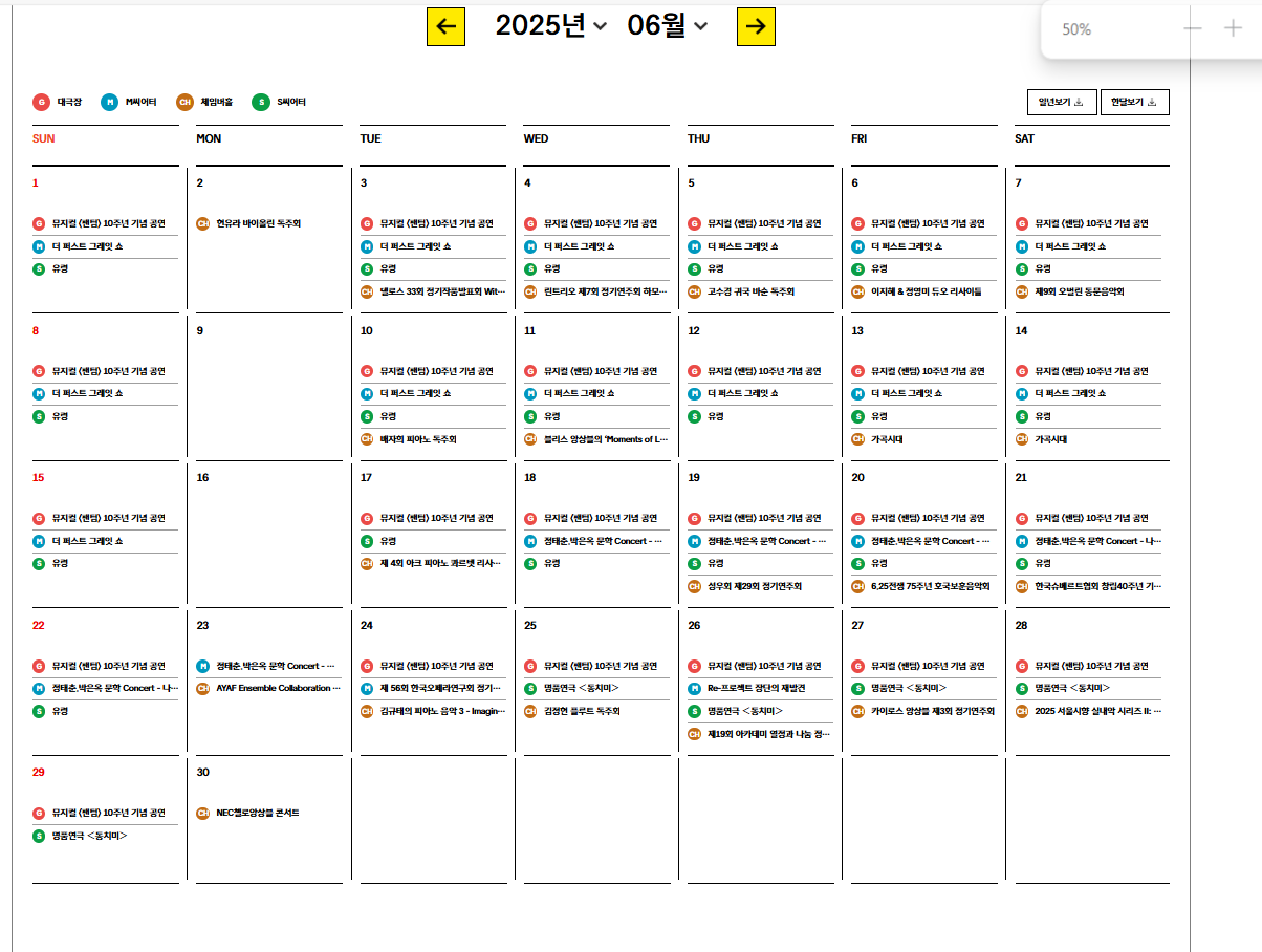 다음은 월별 주요 공연 일정입니다. 자세한 사항은 세종문화회관 홈페이지에서도 확인하실 수 있어요.