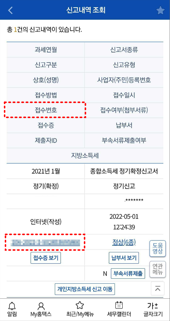 5. 종합소득세 신고 내역과 환급 예정 금액 확인