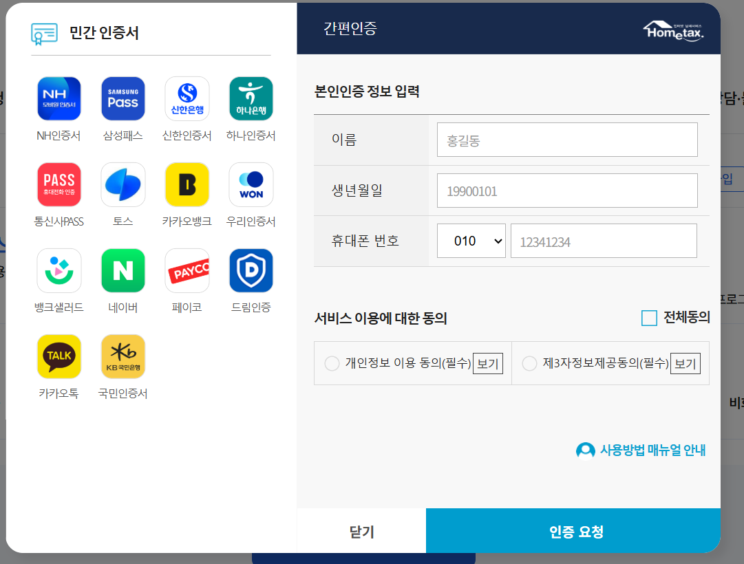 홈택스 웹사이트 신청