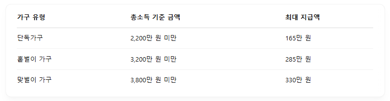 자격 조건을 충족하지 못하면 지급 대상에서 제외되므로, 반드시 소득 및 재산 요건을 확인한 후 신청해야 합니다.