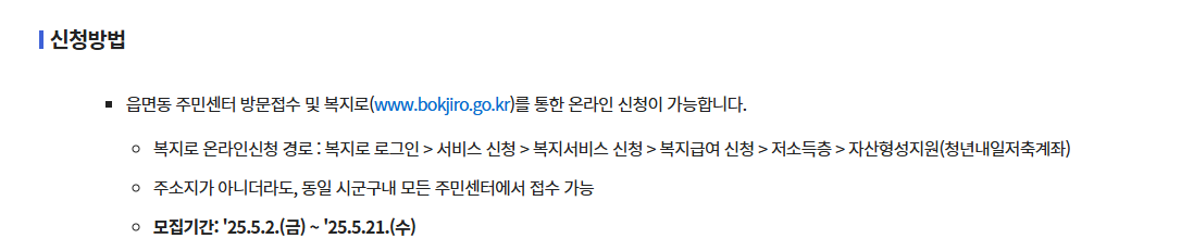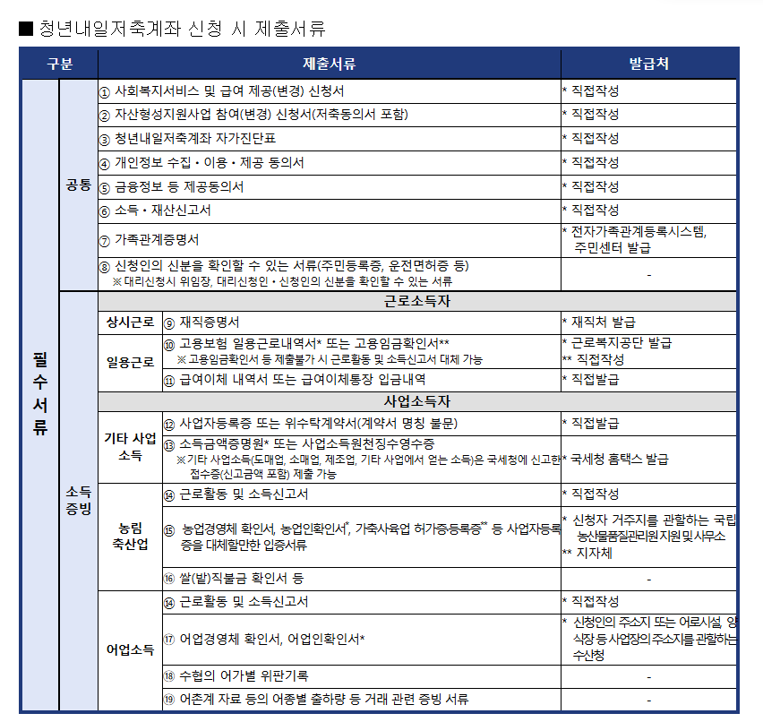 - 기타: 신청일 기준 현재 근로(또는 사업) 중이며, 본인 명의 통장 개설 가능자