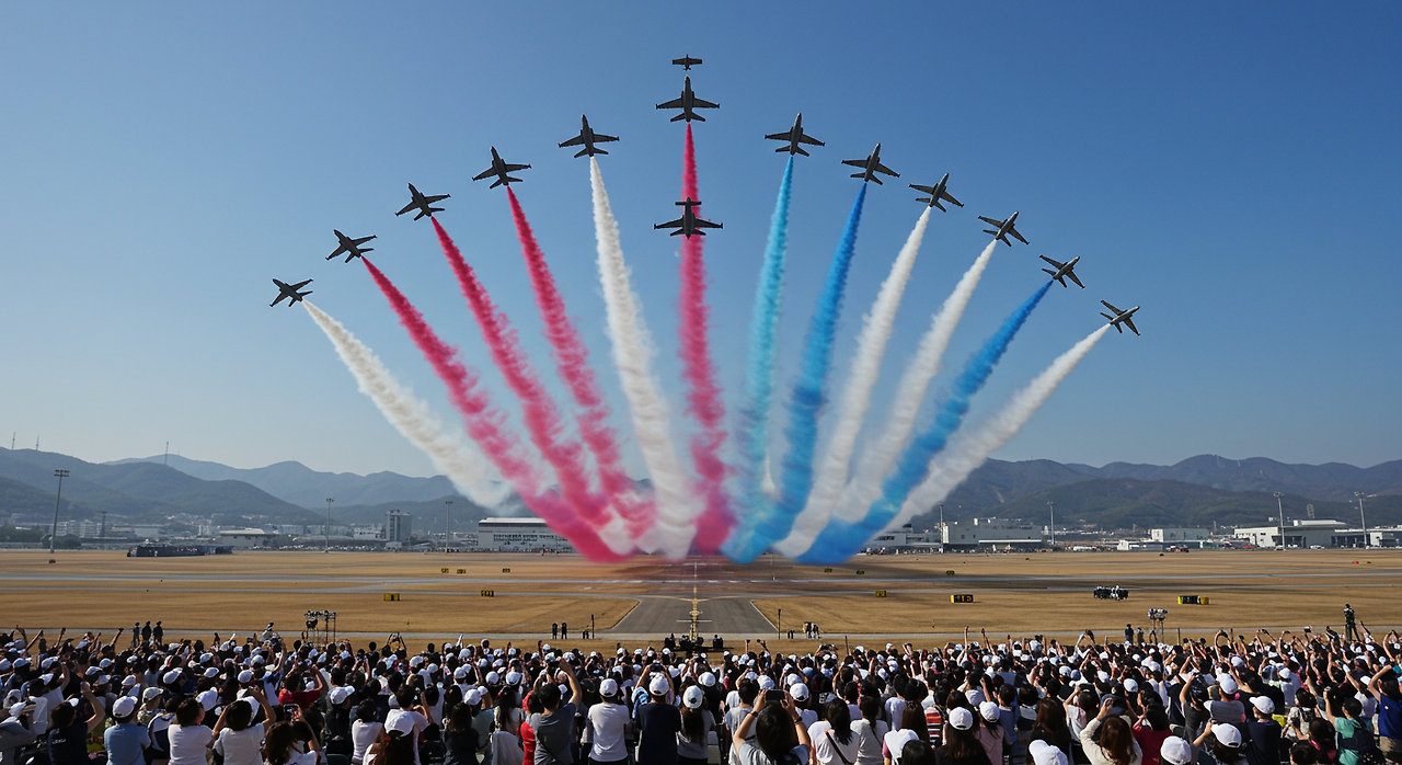 메인 에어쇼는 양일 모두 오후 1시부터 3시까지 진행되지만, 실제 비행 프로그램은 오전 10시 30분부터 단계적으로 시작됩니다. 다양한 항공기의 특성과 성능을 보여주는 시범 비행이 차례로 펼쳐지며, 오후 시간대에는 더욱 역동적인 비행 쇼가 준비되어 있습니다. 카메라와 쌍안경을 꼭 준비해 가시기 바랍니다!