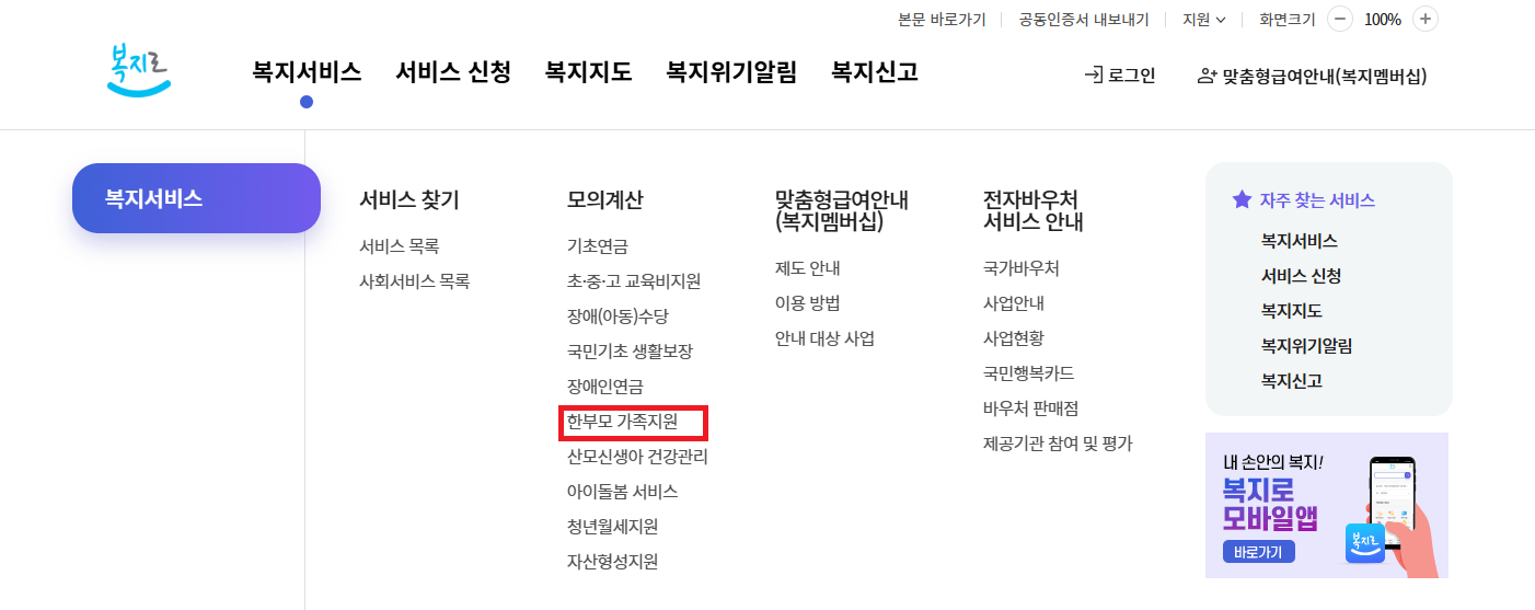 - 대상: 만 18세 미만 자녀를 양육 중인 한부모가정