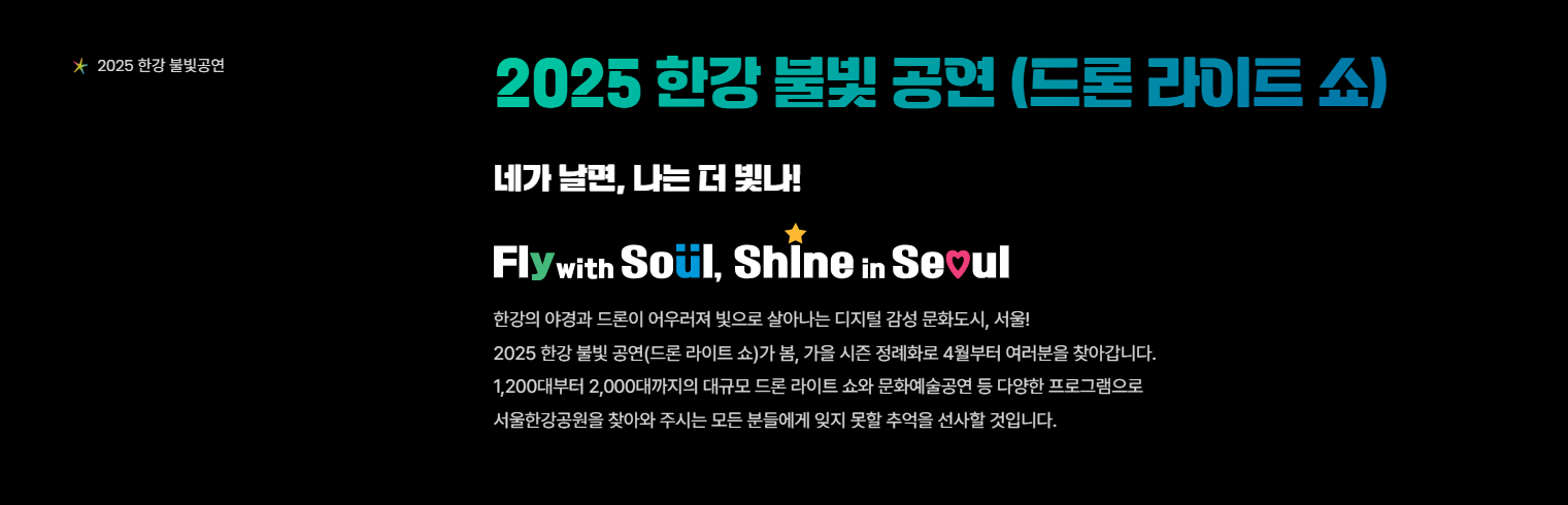 - 행사명: 2025 한강 불빛 공연(드론 라이트 쇼)