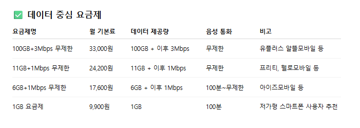 - 심플한 구성: 데이터나 음성 통화에 집중한 요금제가 많아 선택이 용이합니다.