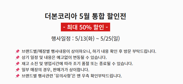 - 행사 기간: 2025년 5월 13일(화) ~ 5월 25일(일)