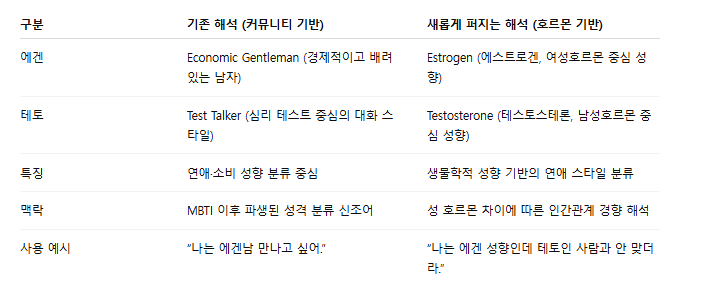 최근에는 ‘에겐’과 ‘테토’가 호르몬 성향에서 유래한 신조어라는 해석이 힘을 얻고 있습니다.
