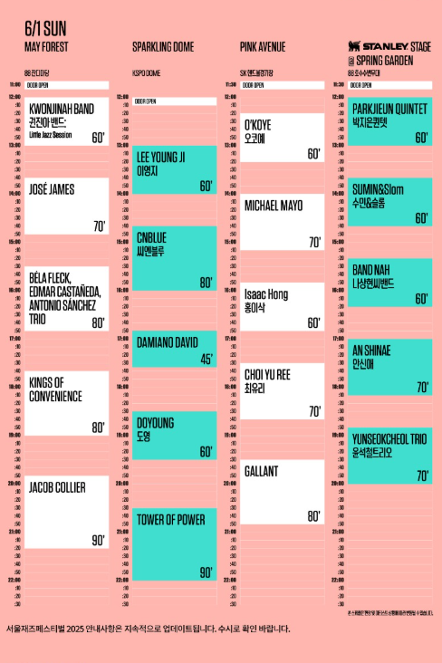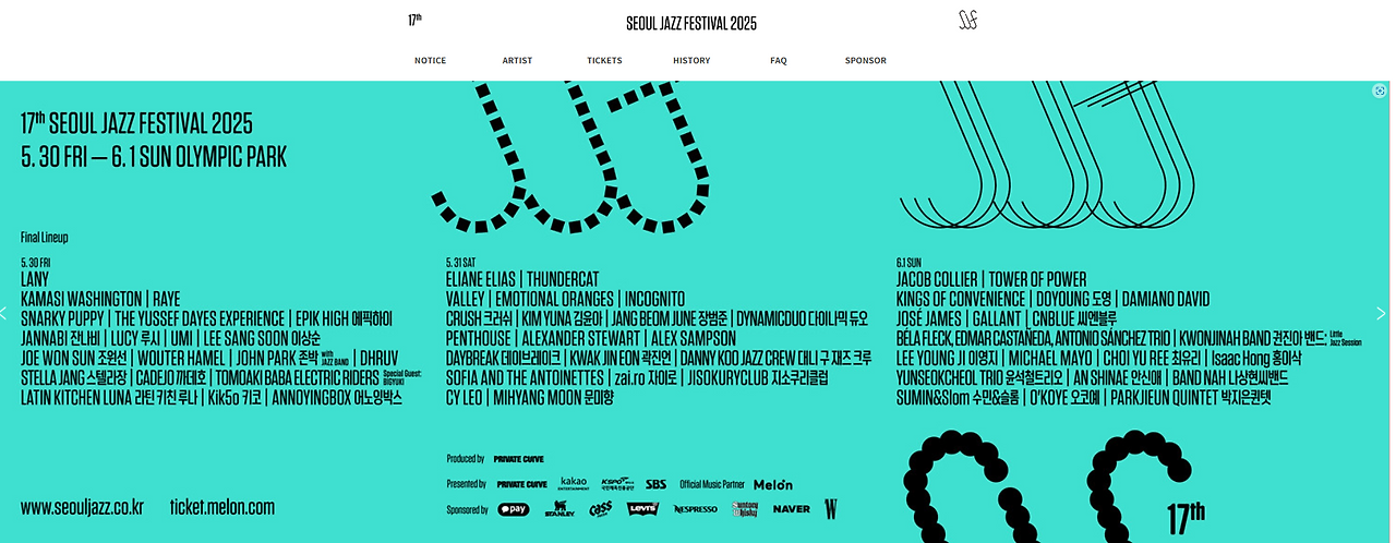 - Jacob Collier, Laufey, Snarky Puppy 등 글로벌 팬덤을 보유한 뮤지션 다수 예정 (※ 최종 라인업은 변동 가능)