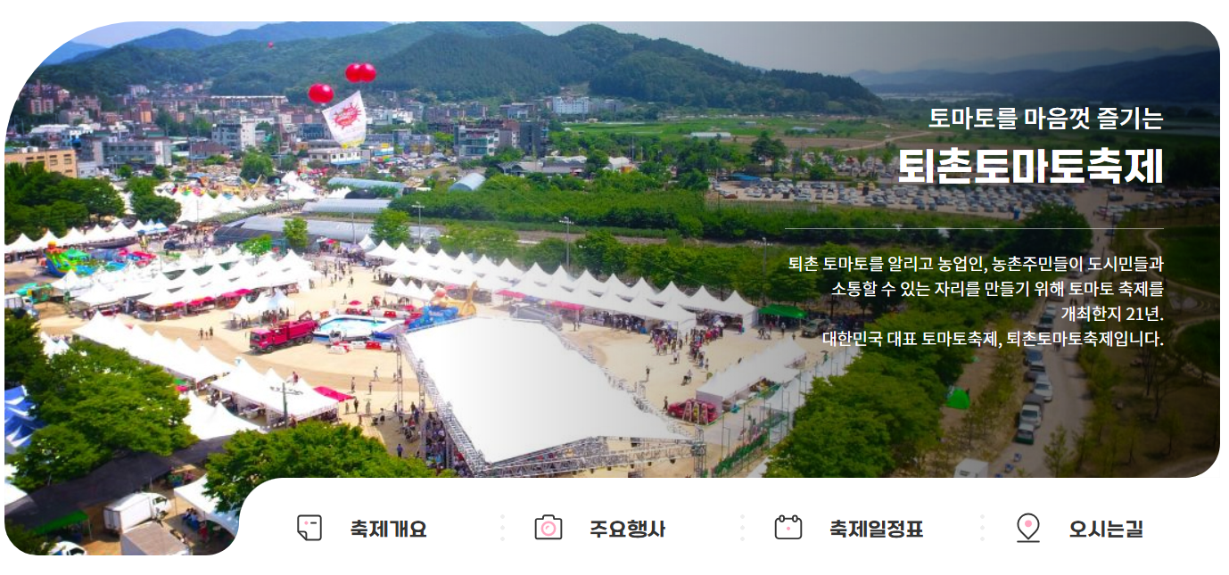 퇴촌은 경기 동남부에 위치한 청정 지역으로, 특히 퇴촌 토마토는 당도와 육질이 뛰어나 전국적으로 품질을 인정받고 있습니다. 이 지역 특산물을 테마로 열리는 축제는 단순한 농산물 직거래를 넘어서, 도시민에게 농업에 대한 이해를 넓히고 색다른 체험을 제공하는 데 목적이 있습니다. 저도 이번에 가려고 많이 준비중입니다.