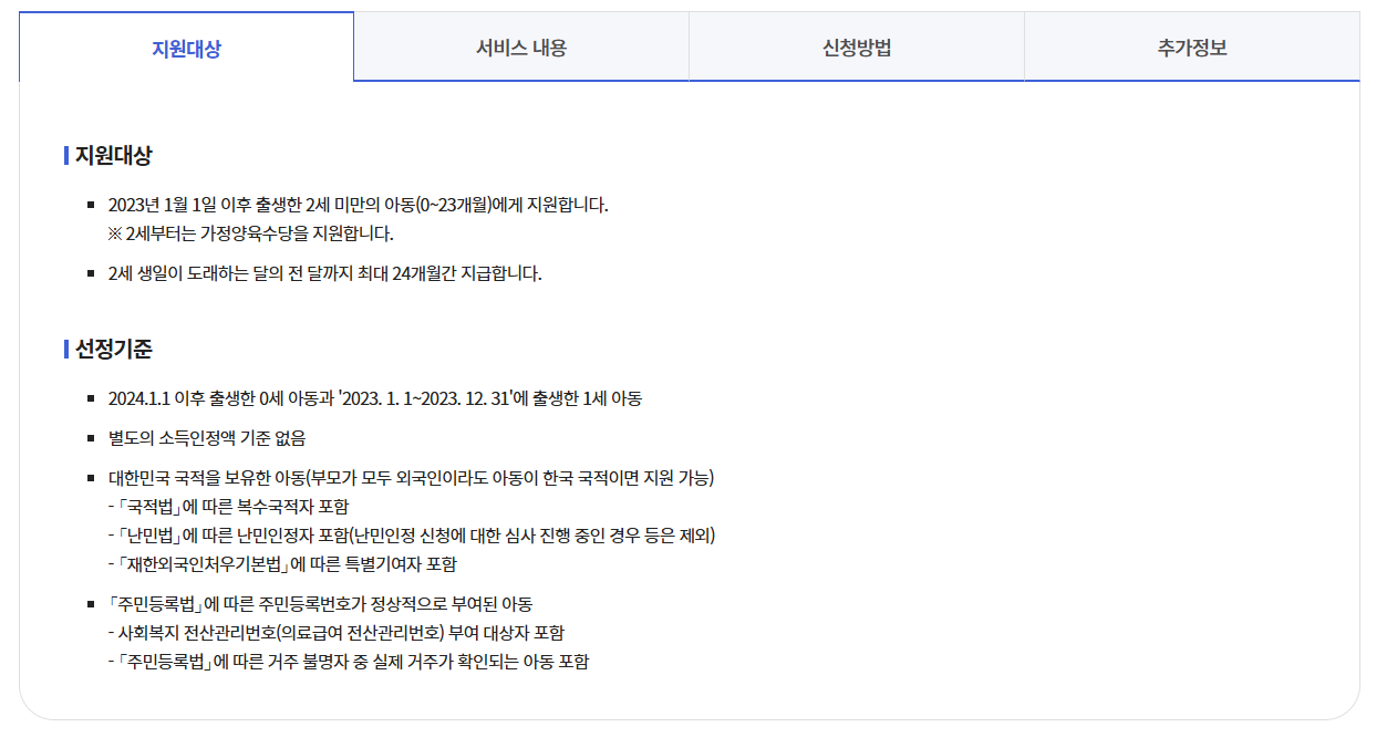 | 거주 요건 | 아동이 주민등록상 대한민국 내 거주 중 |