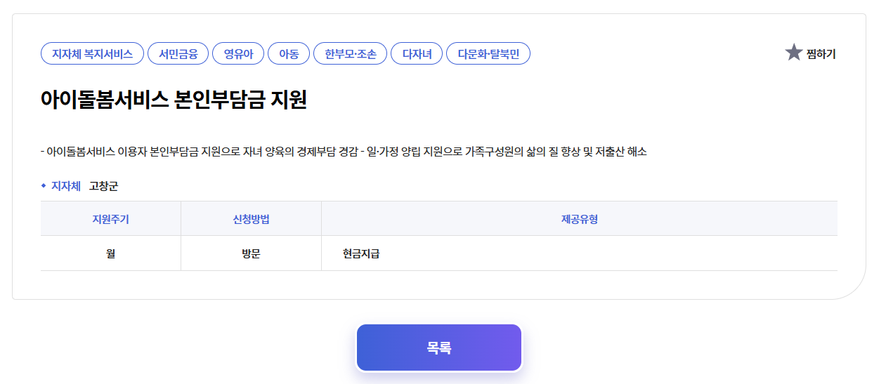 | 아이돌봄 제공기관 | 정부 인증 기관(센터, 가정방문 서비스 등) |