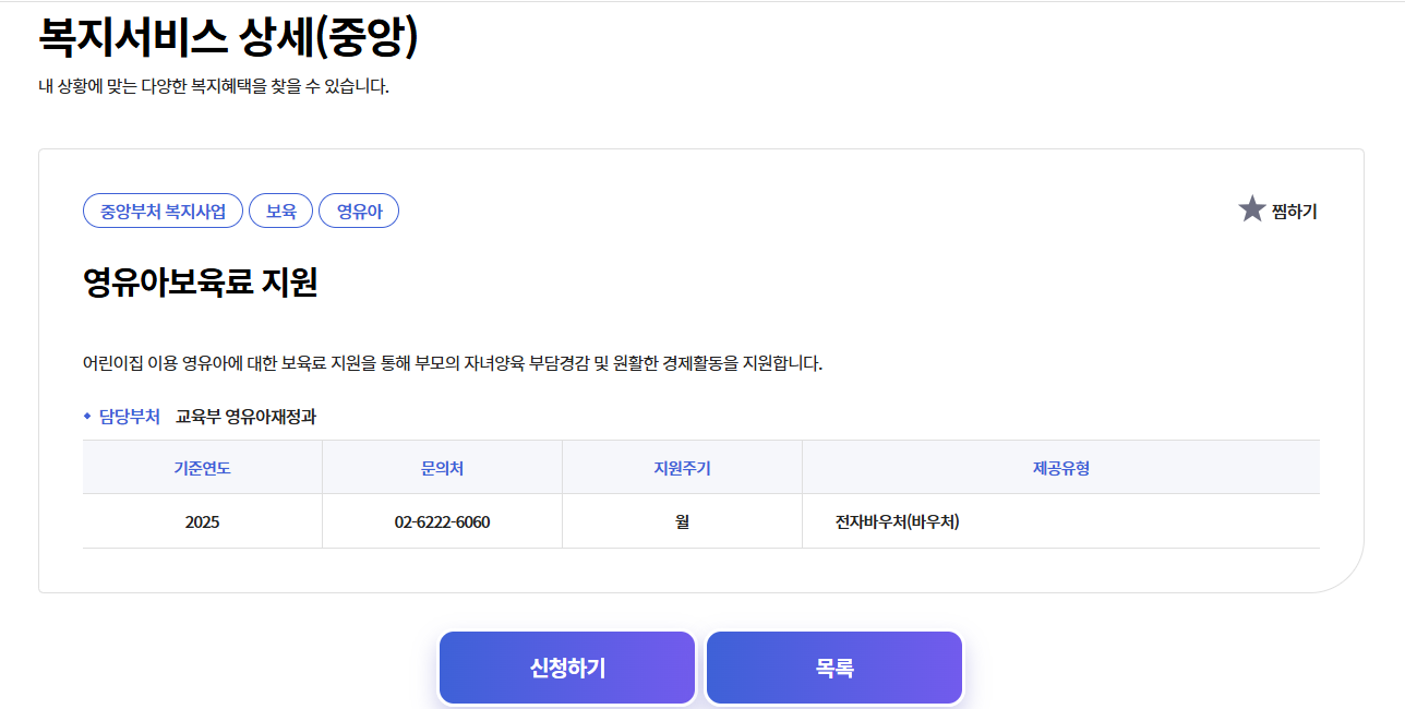 - 정기 신청: 어린이집 입소 시 수시 신청 가능